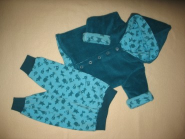 Die Kuschelhosen und Wendejacken fertige ich in den Grössen 50/56 bis 74/80 jeweils in Doppelgrössen. Die Kleidungsstücke fallen grosszügig aus. Hose: EUR 19,00 Wendejacke: EUR 29,00